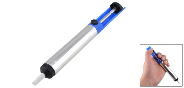 Product Name Desoldering Pump Material Metal, Aluminium Main Color Silver Tone, Blue Size(Approx.) 19 x 2cm/ 7.5'' x 0.8''(L*D) Tip Inner Hole Dia. 2.6mm/ 0.1" Weight 45g Package Content 1 x Desoldering Pump - Reviews