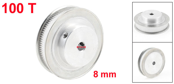Silver Tone Aluminum Alloy 100 Teeth 8mm Pilot Bore Screwed Timing Pulley