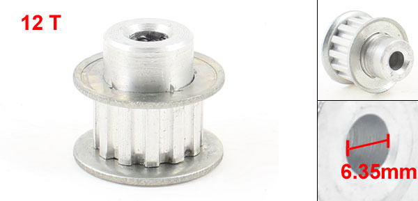 Silver Tone Aluminum Alloy 12 Teeth 6.35mm Pilot Bore Screwed Timing Pulley