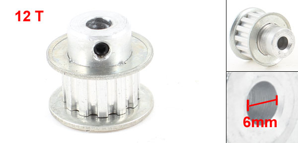 Silver Tone Aluminum Alloy 12 Teeth 6mm Pilot Bore Screwed Timing Belt Pulley