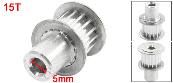 Product Name Timing Pulley Tooth Number 15T Pitch 3mm /0.12" Bore Diameter 5mm /0.2" Bore Outside Diameter 10mm /0.4" Fit Belt Width 11 mm /0.43" Overall Size 20 x 25mm /0.8" x 1" (D*H) Material Aluminum Alloy Color Silver Tone Weight 10g Package Content 1 x Timing Pulley - Reviews