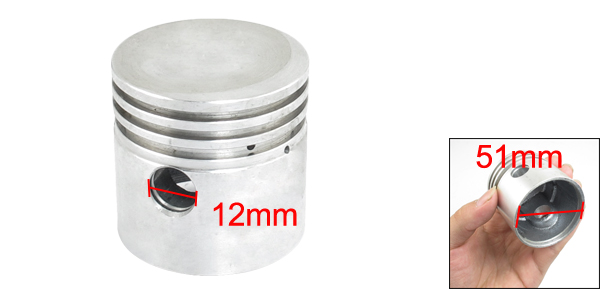 DetailsSilver Tone Aluminum Alloy 51mm Diameter Air Compressor Piston  Product Name Air Compressor Piston Material Aluminum Alloy Pin Bore Diameter 12mm/ 0.47" Size (Approx) 51 x 50mm/2" x 1.97" (Dia*H) Color Silver Tone Weight 91g Package Content 1 x Air Compressor Piston