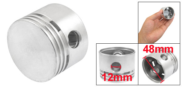 Product Name Air Compressor Piston Material Aluminum Alloy Pin Bore Diameter 12mm/ 0.5" Size (Approx) 48 x 35mm/ 1.9" x 1.4" (D*T) Color Silver Tone Weight 60g Package Content 1 x Air Compressor Piston - Reviews