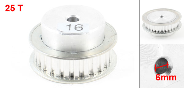 Silver Tone Aluminum Alloy XL Type 25 Tooth 6mm Pilot Bore Timing Pulley
