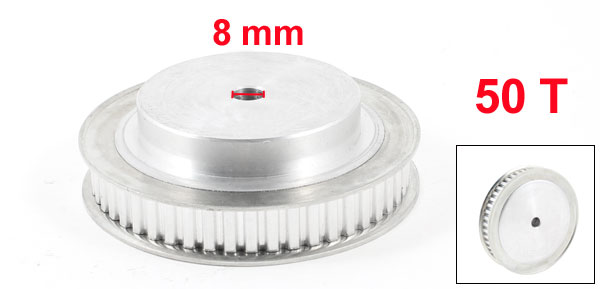 Product Name Timing Pulley Type XL Tooth Number 50 Pitch 5.08 mm / 1/5" Bore Diameter 8 mm / 5/16" Outside Diameter 55 mm / 2.165" Fit Belt Width 11 mm / 0.433" Overall Size 85 x 25 mm / 3.35" x 0.98" (D*H) Material Aluminum Alloy Color Silver Tone Weight 296g Package Content 1 x Timing Pulley - Reviews