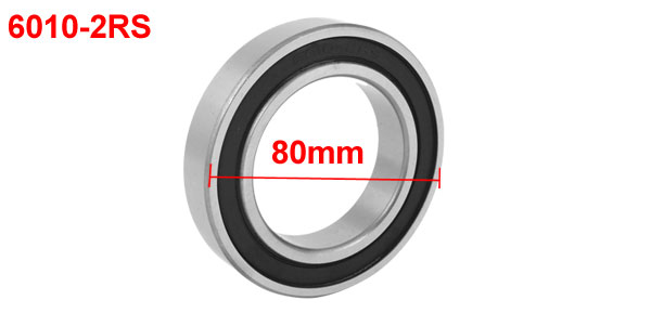 Silver Tone Black 6010-2RS Deep Groove Ball Bearing 80mm x 50mm x 16mm