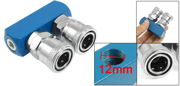 Product Name Air Hose Quick Connect Coupling Material Metal Color Silver Tone, Blue Hex Diameter 6mm/ 0.24" Thread Diameter 12mm/ 0.48" Hole Diameter 13mm/ 0.51" Total Size 6 x 2 x 5.5cm/ 2.4" x 0.78" x 2.2" (L*W*T) Weight 179g Package Content 1 x Air Hose Quick Connect Coupling - Reviews