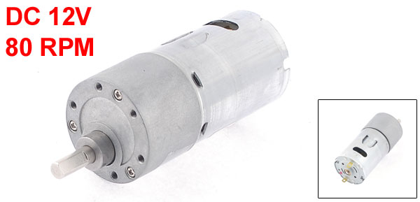 Product Name DC Geared Motor Rated Voltage DC 12V Output Speed 80 RPM Shaft Diameter 6mm/ 0.236" Gearbox Part Diameter 37mm/ 1.456" Motor Part Diameter 35.5mm/ 1.397" Total Length(Approx.) 80mm/ 3.15" Material Metal, Electronic Parts Color Silver Tone Weight 190g Package Content 1 x DC Geared Motor  - Reviews