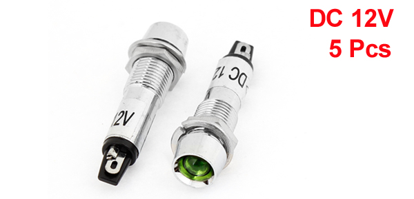 Silver Tone Metal Case Green Lamp Signal Indicator Pilot Light DC 12V 5 Pcs