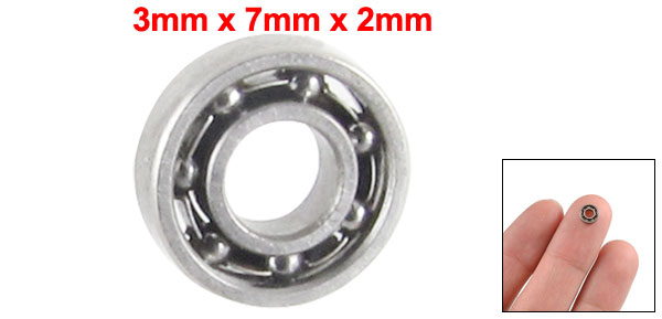 Product Name Deep Groove Ball Bearing Inner Diameter 3mm/ 0.12" Outer Diameter 7mm/ 0.28" Width 2mm/ 0.08" Material Metal Main Color Silver Tone Weight 1g Package Content 1 x Deep Groove Ball Bearing - Reviews