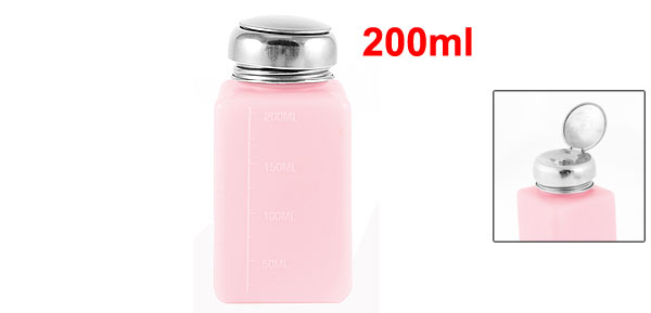 Silver Tone Metal Lid 200ml Plastic Liquid Storage Alcohol Bottle Pink
