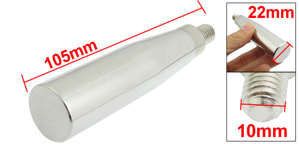 DetailsSilver Tone Metal M10 10mm Tapered Revolving Handle for Lathe Milling Machine  Product Name Revolving Handle Material Chrome Plated Metal Overall Size 105 x 22mm / 4.1" x 0.86" (L*Max.D) Thread Size M10 (10mm) x 15mm / 0.39" x 0.59" (D*L) Nut Size 16 x 10mm / 0.6" x 0.4" (L*W*T) Color Silver Tone Net Weight 235g Package Content 1 x Revolving Handle