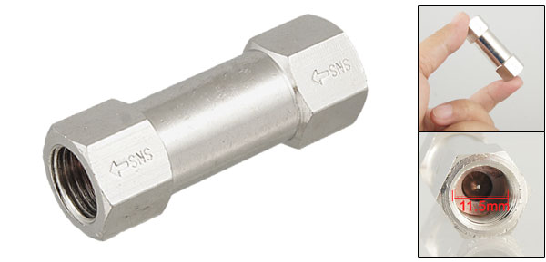 Product Name One Way Check Valve Color Silver Tone Screw Hole Dia 11.5mm/ 0.45" Size 7 x 50mm/ 0.3" x 2" (D*H) Material Metal Weight 49g Package 1 x One Way Check Valve - Reviews