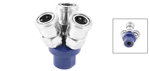 Silver Tone Navy Blue 13mm Outlet 3 Pass Air Hose Quick Connector Coupler