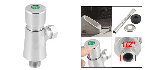 Product Name Toilet Flush Valve Design Push Button Type Material Metal Male Thread Dia. PT 1/2" Hole Inner Dia. 12.8mm / 1/2" Overall Size (Approx.) 10.8 x 4 x 6cm / 4.3" x 1.6" x 2.4" (L*W*H) Color Silver Tone Weight 275g Package Content 1 x Toilet Flush Valve - Reviews