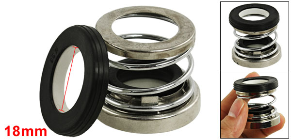 DetailsSingle Coil Spring 18mm Inner Diameter Pump Mechanical Seal  Product Name Mechanical Seal Internal Diameter 18mm / 23/32“(0.708") Rotary Ring Size 33 x 18.7 x 5mm / 1.3" x 0.7" x 0.2"(OD*Inner D*T) Overall Size 34 x 30cm / 1.3" x 1.18" (D*H) Material Rubber, Metal, Ceramic Color Black, Silver Tone, White Net Weight 30g Package Content 1 x Mechanical Seal