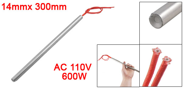 Product Name Cartridge Heater Material Stainless Steel, PVC, Nylon Rated Voltage AC 110V Power 600W Heater Size (Approx.) 14 x 300mm/ 0.55'' x 11.8'' (D * L)