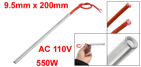Product Name Cartridge Heater Material Stainless Steel, PVC, Nylon Rated Voltage AC 110V Power 550W Heater Size (Approx.) 9.5 x 200mm/ 0.37'' x 7.8'' (D * L)