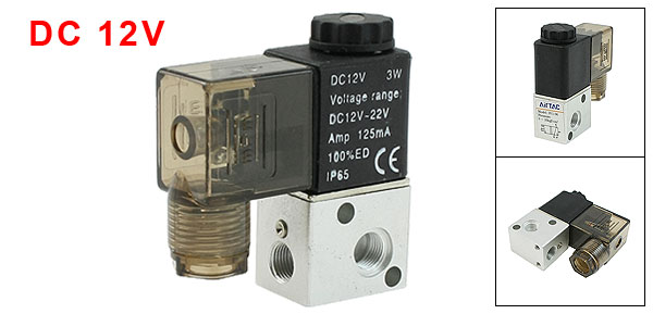 Current 125mA Voltage Range DC 12V-22V Position & Way Number Two-position, Three-way Female Thread Dia 8.5mm / 0.33" Total Size 6 x 6 x 2.2cm/2.4" x 2.4" x 0.9" (L*W*H) External Material Metal, Plastic Color White, Black Net Weight 145g Package Content 1 x Solenoid Valve - Reviews