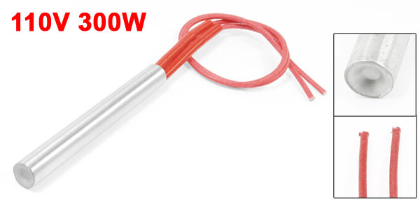 DetailsSingle Head Red Two-wire Cartridge Heater 110V 300W 10mm x 80mm  Product Name Cartridge Heater Material Stainless Steel, PVC, Nylon Rated Voltage AC 110V Power 300W Heater Size (Approx.) 10 x 80mm / 0.39" x 3.1" (D * L ) Wire Length(Approx.) 26cm / 10.2" Color Silver Tone, Red Weight 34g Package Content 1 x Cartridge Heater