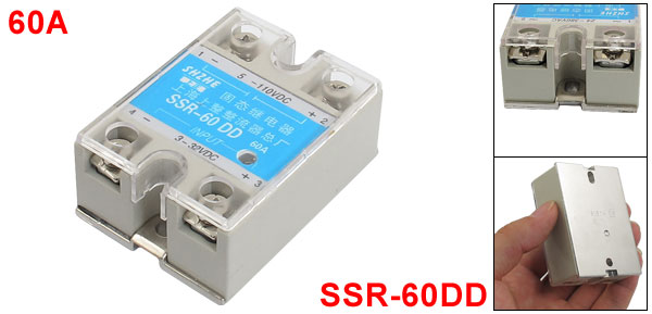 Product Name Solid State Relay Type SSR-60DD Material Metal, Plastic Rated Load Current 60A Input DC 3-32V Output DC 5-110V Mounting Hole Size Small Dia:4.3mm/0.2"