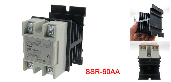 Heat Sink: AluminumRated Load Current 60A Input AC 80-250V Output AC 75-480V Relay Size 5.7 x 4.2 x 2.5cm / 2.2" x 1.7" x 1" (L*W*T) Heat Sink Size 8 x 5 x 5cm/ 3.1" x 2" x 2"(L*W*H) Total Size 8 x 5 x 7.6cm/ 3.1" x 2" x 3"(L*W*H) Main Color Black, Gray Weight 200g Package Content 1 x Solid State Relay w Heatsink - Reviews