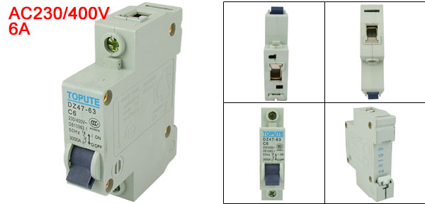 Product Name Miniature Circuit Breaker Rated Current 6A Rated Voltage AC230/400V Breaking Capacity 3000A Frequency 50Hz Number of Poles 1 Overall Size (Approx.) 7.7 x 6.6 x 1.8cm/3" x 2.6" x 0.7"(L*W*T ) Material Plastic, Electric Components Color As Picture Shown Weight 82g Package Content 1 x Miniature Circuit Breaker - Reviews
