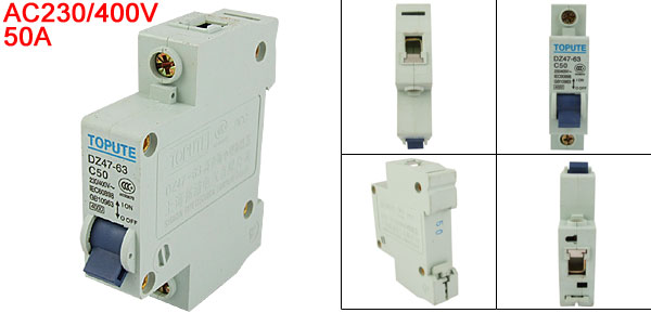 Product Name Miniature Circuit Breaker Model Number DZ47-63 C50 Rated Circuit Breaking Capacity 4000A Rated Current 50A Rated Voltage AC230/400V Number of Poles 1 Overall Size (Approx.) 7.7 x 6.6 x 1.7cm/3" x 2.6" x 0.7"(L*W*T ) Material Plastic, Electric Components Color As Picture Shown Weight 86g Package Content 1 x Miniature Circuit Breaker - Reviews