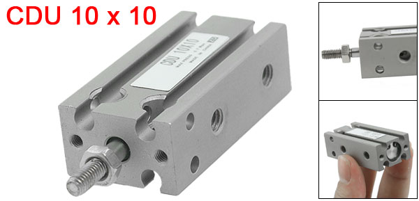 Product Name Pneumatic Cylinder Model CDU 10 x 10 Action Type Double Action Rod End Thread Male Thread Fluid Air Power Pneumatic Bore 10mm / 0.39" Stroke 10mm / 0.39" Max.Press 0.7MPa Screw Hole Dia 4mm / 0.157"