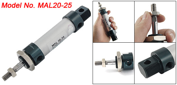 Product Name Air Cylinder Model No. MAL20-25 Action Double Acting Rod Type Single Jam Nut Rod Bore 20mm / 25/32" Stroke 25mm / 63/64" Rod Dia(Approx) 7.6mm / 19/64" Threaded Hole Dia(Approx) 8mm / 5/16" End Hole Dia(Approx) 7.7mm / 5/16" End Size(Approx) 21.6 x 15.8cm / 55/64" x 5/8"(W*H) Max Press 1.0Mpa Overall Size(Approx) 155 x 30 x 30mm / 6" x 1.2" x 1.2"(L*W*H) Material Aluminium Alloy Weight 192g Package Content 1 x Air Cylinder - Reviews