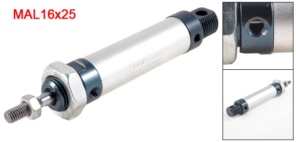 Product Name Air Cylinder Model MAL16x25 Rod Type Single Rod Action Type Double Action Bore 16mm/ 0.6" Stroke 25mm/ 0.9" Port Dia 4.5mm/ 0.17" Thread Rod Dia 6mm/ 0.23" Thread Tang End Size 16 x 12mm/ 0.6" x 0.4"(D*T) Total Size (Approx) 130 x 20mm/ 5.1" x 0.7"(L*D) Main Material Aluminum Alloy Color Gray, Black Weight 90g Package Content 1 x Air Cylinder - Reviews