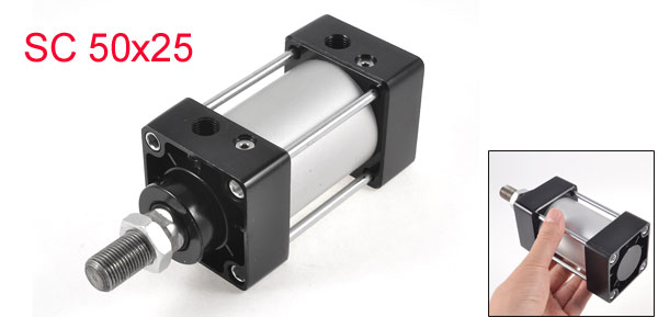 Product Name Air Cylinder Model SC50x25 Rod Type Single Rod Action Type Double Action Bore 50mm/ 1.9" Stroke 25mm/ 0.9" Port Dia 12mm/ 0.4" Thread Rod Dia 16mm/ 0.6" Total Size (Approx) 180 x 61 x 61mm/ 7" x 2.4" x 2.4"(L*W*H) Main Material Aluminum Alloy Color Gray, Black Weight 924g Package Content 1 x Air Cylinder - Reviews