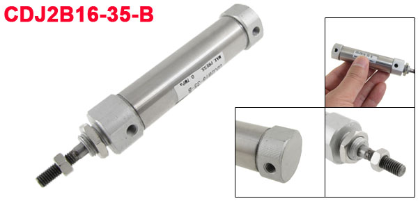 DetailsSingle Rod Dual Acting 0.7Mpa Air Cylinder 16mm 5/8" Bore 35mm 1 3/8" Stroke  Product Name Air Cylinder Model CDJ2B16-35-B Action Type Double Acting Rod Type Single Rod Fluid Air Bore Size 16mm / 5/8" Stroke Size 35mm / 1 3/8" Rod Diameter 4.8mm / 0.19" Rod Thread Diameter 4.8mm / 0.19" Thread Hole Diameter 4mm / 0.16" Max. Press 0.7Mpa Overall Size (Approx.) 110 x 18mm / 4.3" x 0.7" (L*Max.W) Main Material Metal Net Weight 72g Package Content 1 x Air Cylinder