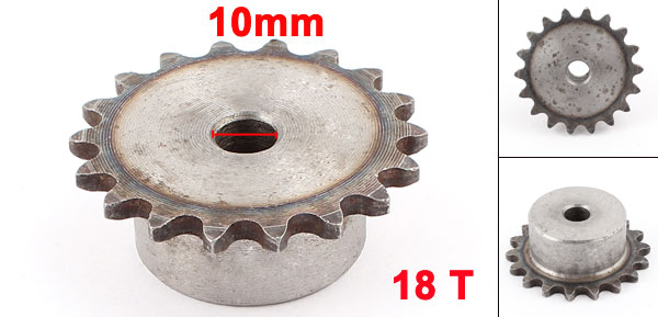 Product Name Chain Drive Sprocket Material Metal Color Gray Teeth Number 18 Teeth Fit Shaft Diameter 10mm / 1/4" Teeth Depth 6mm/0.24" Bottom Diameter 39mm/1.5" Gear Overall Size 59 x 22mm / 2.3" x 0.87"(D*H) Net Weight 221g Package Content 1 x Chain Drive Sprocket - Reviews