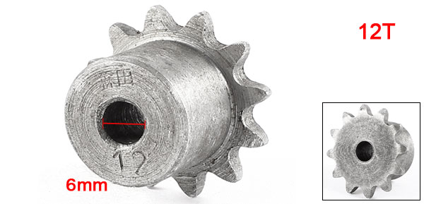 Product Name Chain Drive Sprocket Teeth Number 12T Tip Inner Hole Dia 6mm /1/4" Tip Outer Dia 27mm / 1.06" Tip Thickness 2.5mm/0.1" Shaft Dia 18mm/0.5" Total Height 15mm/0.59" Material Stainless Steel Color Gray Net Weight 32g Package Content 1 x Chain Drive Sprocket - Reviews