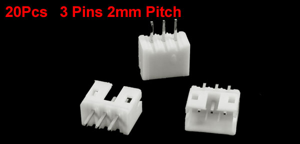Product Name Header Connector Socket Number of Pins 3 Pitch 2mm/0.08'' Size 8 x 12 x 5mm/0.36'' x 0.5'' x 0.2'' (L*W*H) Material Plastic, Metal Main Color White Net Weight 5 g Package Content 20 x Header Connector Socket - Reviews