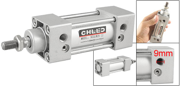 Product Name Pneumatic Cylinder Model SC 32 x 25 Action Type Double Acting Rod Type Single Rod Fluid Air Power Pneumatic Bore 32mm Stroke 25mm Max Pressure 1.0 MPa Screw Hole Dia 8.5mm (Approx.) Thread Rod Dia 9mm (Approx.) Size 4.5 x 4.5 x 16.7cm/ 1.8" x 1.8" x 6.6" (L*W*H) Material Metal Color Silver Tone Net Weight 492g Package Content 1 x Pneumatic Cylinder - Reviews