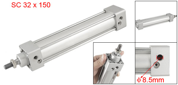Product Name Pneumatic Cylinder Model SC 32 x 150 Action Type Double Acting Rod Type Single Rod Fluid Air Power Pneumatic Bore 32mm Stroke 150mm Max Pressure 1.0 MPa Screw Hole Dia 8.5mm (Approx.) Thread Rod Dia 9mm (Approx.) Size 4.5 x 4.5 x 29.4cm/ 1.8" x 1.8" x 11.6" (L*W*H) Material Metal Color Silver Tone Net Weight 779g Package Content 1 x Pneumatic Cylinder - Reviews