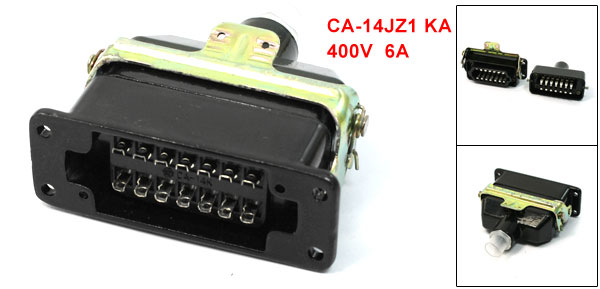 Product Name Rectangular ConnectorModel CA-14JZ1 KA Contacts Number 14 Wire Hole Number 1 Plug Type Straight Working Volt 400V Rated Current 6A Contacts Resistance ≤ 0.001Ω Insulating Resistance ≥ 1000MΩ Dimension 7.8 x 8 x 3.3cm/ 3.1" x 3.15" x 1.3"(L*W*H) Cable Diameter 12mm/ 0.47" Mount Hole 3.5mm Material Metal, Plastic Main Color Black, White Net Weight 120g Package Content 1 x Rectangular Connector - Reviews