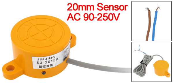 Product Name Proximity Switch Model SJ-2018A Theory Inductive Sensor Wire Type 2 Wire Type (Brown, Blue) Switch Appearance Type Cylinder Type Output Type NO(Normal Open) Sensor Distance 20mm Sensor Supply Voltage AC 90-250V Output Current(Max) 400 mA Detect Object Iron Sensor Head Diameter 30mm/1.2" Total Size 25 x 42mm/1" x 1.6" (L*D) Mounted Hole Dia 7mm/0.27" Mounted Hole Distance 55mm/2.2" Cable Length 1m/3.3ft External Material Plastic, Metal Color Yellow, Black Net Weight 90g Package Content 1 x Proximity Switch - Reviews