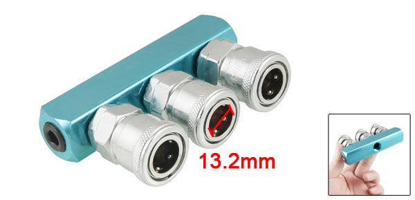 Product Name Quick Coupler Material Metal, Aluminum Color Silver Tone, Sky Blue Air Outlet Number 3 Air Outlet External Diameter 25mm / 0.98" Fit Plug Diameter 13.2mm / 0.52" Female Thread Diameter 1/4" PT Overall Size(Approx.) 95 x 20 x 54mm / 3.74" x 0.8" x 2.1"(L*W*H) Weight 272g Package Content 1 x 3 Way Quick Coupler - Reviews