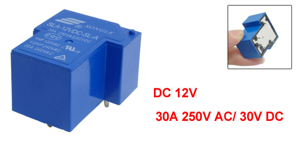 Product Name Power Relay Model SLA-12VDC-SL-A Coil Voltage DC 12V Contact Capacity 30A 250V AC/ 30V DC Number of Pins 5 Contact SPDT Size (Approx.) 3.1 x 2.7 x 2cm/ 1.2" x 1.1" x 0.8"(L*W*H) Color Blue Weight 25g Package Content 1 x PCB Power Relay - Reviews