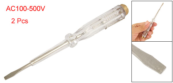 Product Name Electroprobe Voltage AC100-500V Casing Material Plastic Slotted Bit Width 3mm/0.12" Size(Approx.) 14 x 1.5cm/5.5" x 0.6"(L*Dia.) Color Clear, Silver Tone Weight 28g Package Included 2 x Electroprobe - Reviews