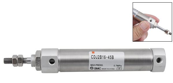Product Name Air Cylinder Material Stainless Steel Model CDJ2B16-45-B Bore 16mm Stroke 45mm Max.Press 0.7MPa Design Single Rod Overall Dimension 12.2 x 2cm(L*D) (Approx) Weight 70g Package Content 1 x SMD Air Cylinder - Reviews