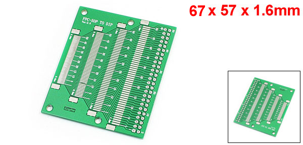 Product Name FPC PCB Adapter Plate Hole Pin Pitch 2.54mm/0.1" Fixing Hole Dia 3mm/0.12" Fixing Hole Center Distance 60 x 37mm/2.4" x 1.5"(L*W) Body Size 67 x 57 x 1.6mm/2.3" x 2.3" x 0.06"(L*W*T) Material Plastic, Electronic Part Main Color Green Net Weight 13g Package Content 1 x FPC PCB Adapter Plate - Reviews