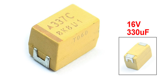 Product Name Chip Tantalum Capacitor Rated Voltage 16V Capacity 330uF Type 7343 E Model Each Size(Approx.) 7.3 x 4.3 x 4.1mm/ 0.29" x 0.17" x 0.16"(L*W*T) External Material Tantalum, Metal Weight 1g Package Content 1 x Chip Tantalum Capacitor - Reviews