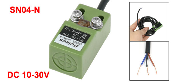 Product Name Inductive Proximity Switch Model SN04-N Theory Inductance Sensor Wire Type 3 Wire Type (Brown, Black, Blue) Output Switching Transducer Output Type NPN NO Detecting Distance 4mm Voltage DC 10-30V Detect Object Iron Size 3.6 x 1.8 x 1.8cm/1.4'' x 0.7'' x 0.7'' (L*W*H) Cable Length 2m/78.7"(6.6Ft) External Material ABS Plastic Net Weight 60g Color Green, Black Package Content 1 x Inductive Proximity Switch