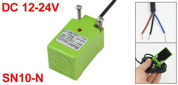 Product Name Inductive Proximity Switch Model SN10-N Theory Inductance Sensor Wire Type 3 Wire Type (Brown, Black, Blue) Output Switching Transducer Output Type NPN NO Detecting Distance 10mm Voltage DC 12-24V(DC 10-30V) 200mA Detect Object Iron Size 5.2 x 3 x 3cm/2'' x 1.2'' x 1.2'' (L*W*H) Cable Length 2m/78.7"(6.6Ft) External Material ABS Plastic Net Weight 107g Color Green, Black Package Content 1 x Inductive Proximity Switch