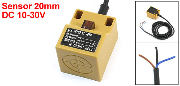 Product Name Proximity Switch Model SN20-N Theory Inductive Sensor Wire Type 3 Wire Type (Brown, Blue, Black) Switch Appearance Type Rectangle Type Output Type NO(Normal Open) Sensor Distance 20mm Supply Voltage DC 10-30V Output Current(Max) 200 mA Detect Object Iron Column Sensor Size 53 x 40 x 40mm/2.1" x 1.6" x 1.6" (L*W*H) Mounted Hole Size 10 x 6mm/0.4" x 0.24"(L*W) Mounted Hole Distance 30mm/1.2" Cable Length 2m/6.7ft External Material Plastic Color Yellow, Black Net Weight 190g Package Content 1 x Proximity Switch - Reviews