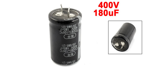 Product Name Electrolytic Capacitor Type Radial Temperature Range -40~+105°C Voltage 400V Capacitance 180uF Feature Snap in Type Terminal Body Size 26 x 41mm/1" x 1.6"(D*H) Lead Space 8mm/0.31" Lead Dia 1.5mm/0.06" External Material Aluminum Total Net Weight 30g Main Color As Picture Show Package Content 1 x Electrolytic Capacitors - Reviews